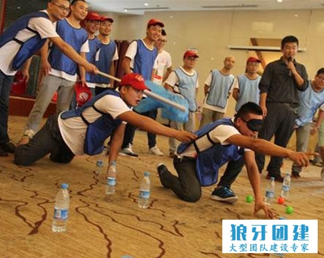决战沙场系列之一(四国大战):每个队伍派出三名队员进行角色扮演:哑巴司令、聋子将军、瞎子士兵。在五米见方的场地上各占据一角。司令下令、将军指挥、士兵行动,消灭其他国家敌人。