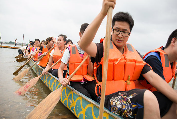 赛龙舟是一项新型的体验水上拓展项目,它能使参赛者身心得到放松,舒缓压力,同时赛龙舟项目还是一个具有挑战性的团队合作项目。